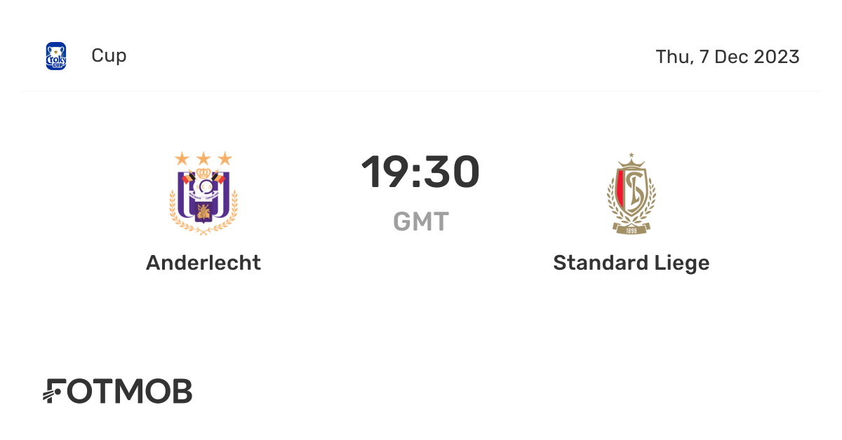 Anderlecht vs Standard Liege live score, predicted lineups and H2H stats.
